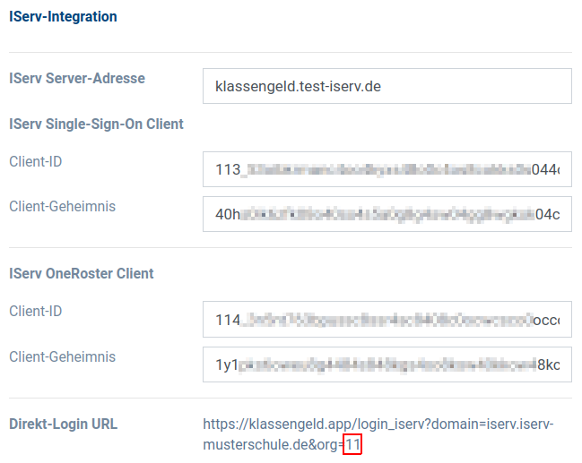 Auf der Website von Klassengeld müssen Sie die Client-ID und das Client-Geheimnis der jeweiligen Clients eintragen.